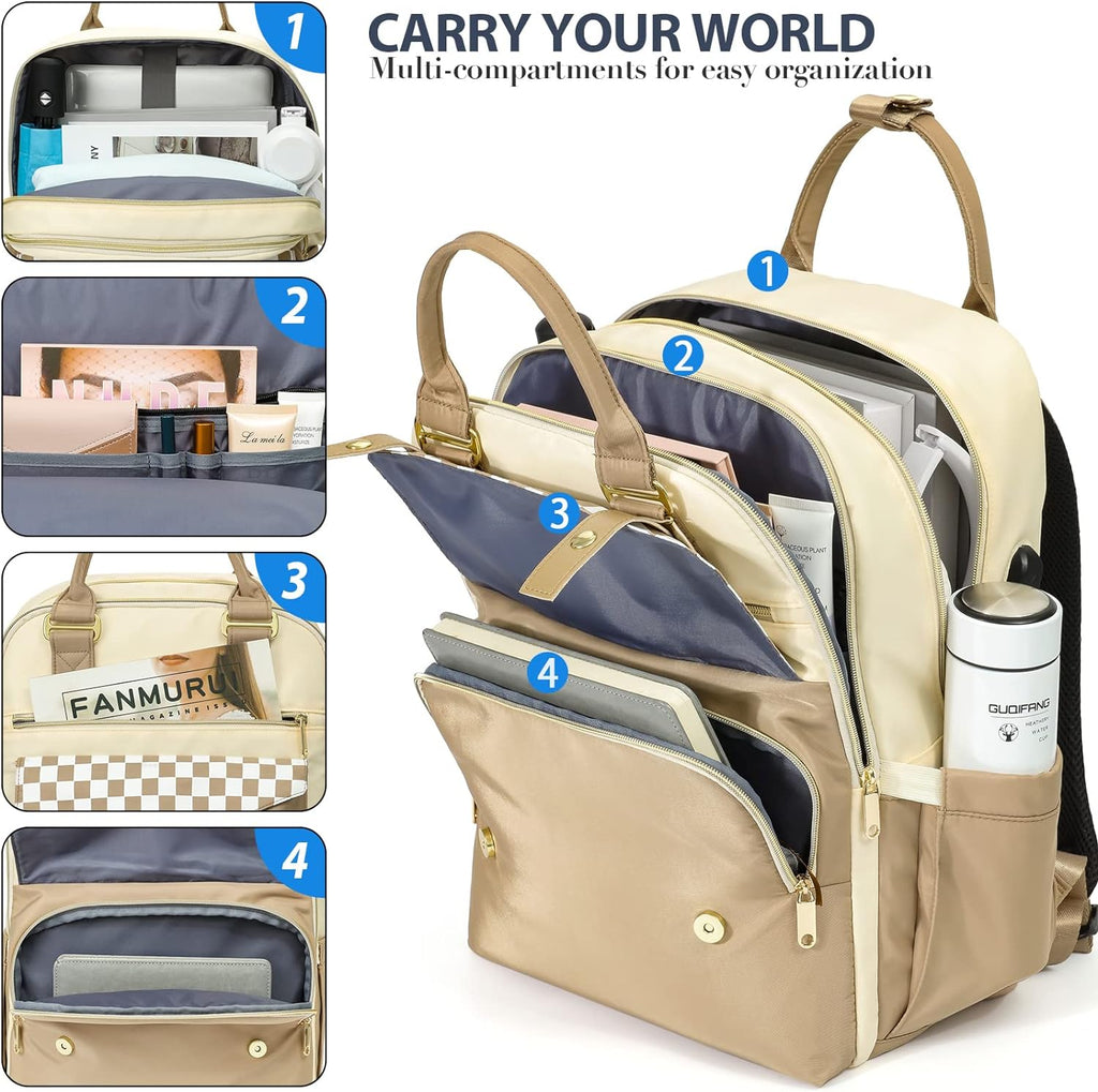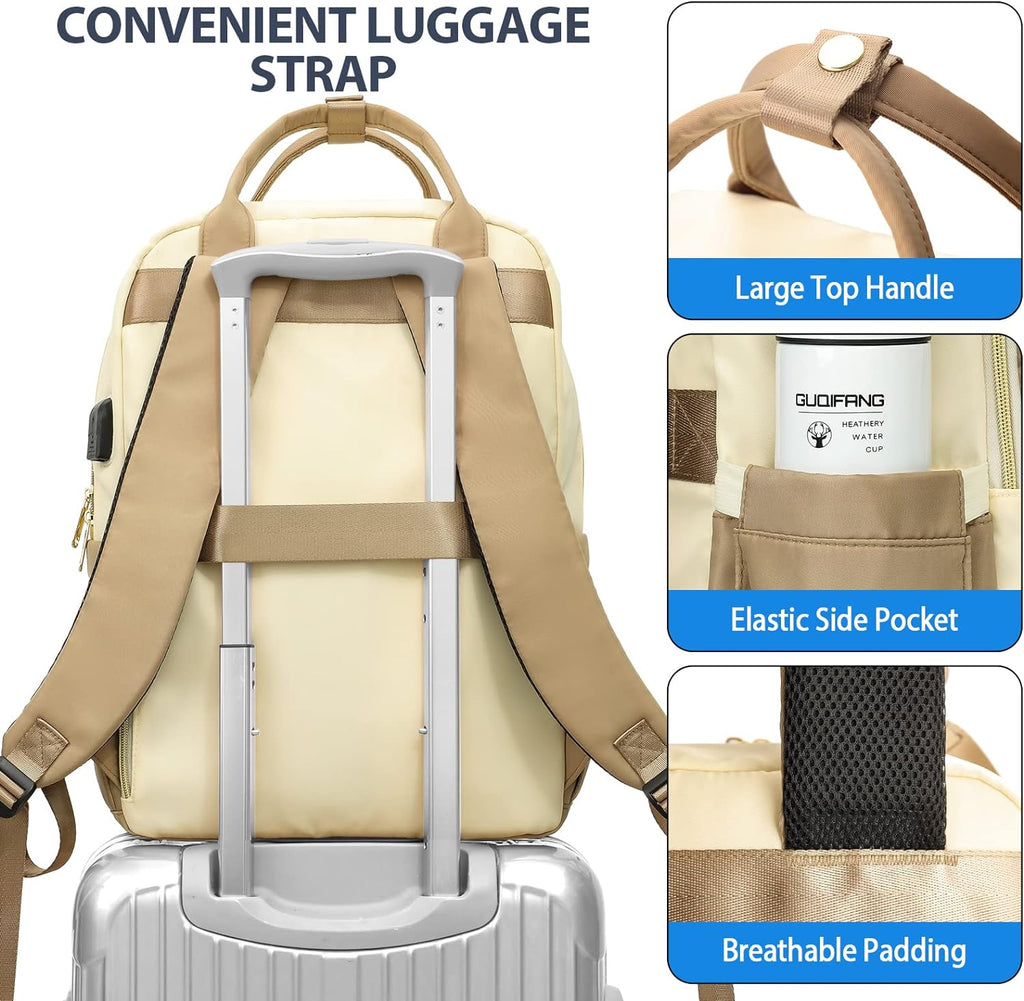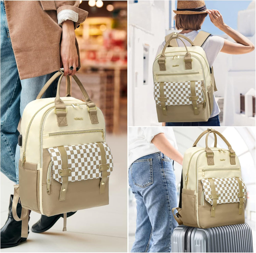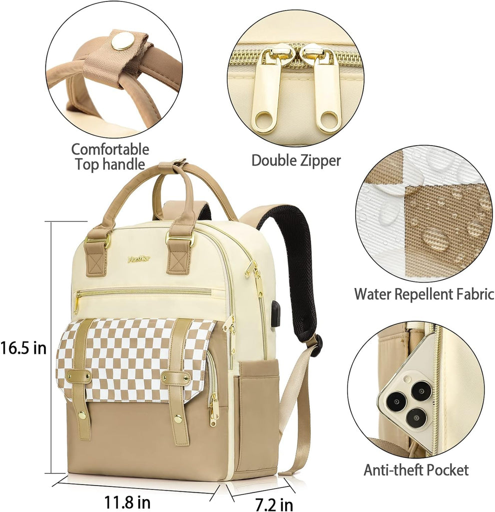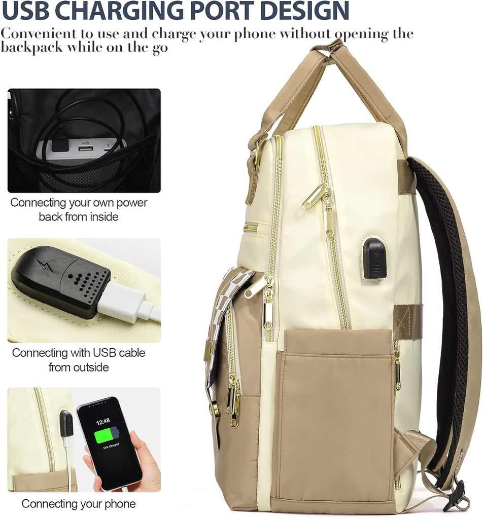 Rucksack Damen, Schulrucksack Mädchen, 15,6 Zoll Laptop Rucksack mit USB Ladeanschluss, Rucksack Beige Geschenke für Frauen für Valentinstag, Muttertag, Geburtstag für Mutter, Schwester