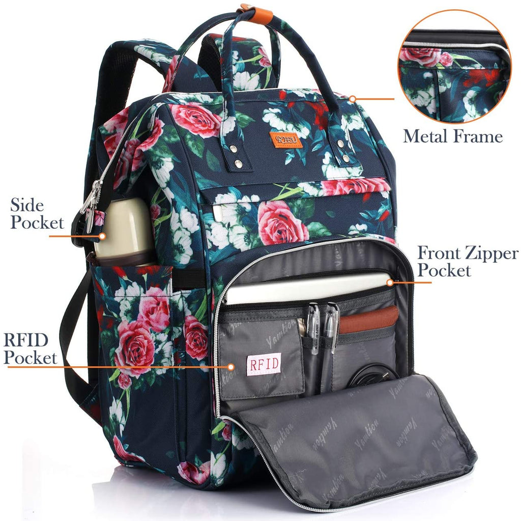• 【GROSSE KAPAZITÄT】 Die weite Öffnung des Frauenrucksacks hat einen Metallrahmen, der bequemer und schneller zu transportieren ist. Der gesamte Schulrucksack verfügt über 1 großes Hauptfach, 1 Computerfach für 15,6-Zoll-Laptops, 1 Mausfach, 12 Taschen zum Organisieren kleiner Dinge, 1 RFID-Taschen und 2 große Seitentaschen mit Gummiband