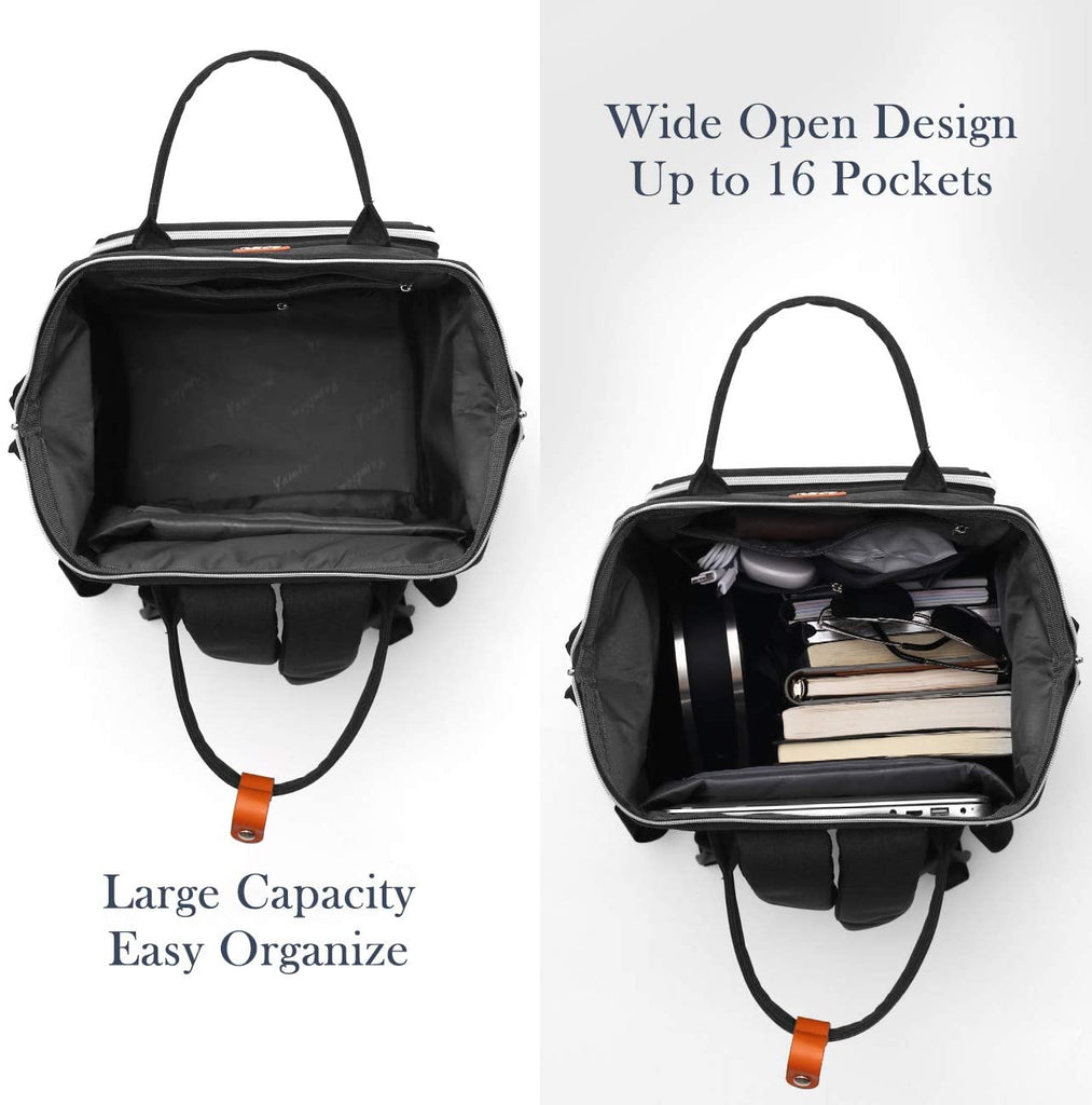 • 【GROSSE KAPAZITÄT】 Die weite Öffnung des Frauenrucksacks hat einen Metallrahmen, der bequemer und schneller zu transportieren ist. Der gesamte Schulrucksack verfügt über 1 großes Hauptfach, 1 Computerfach für 15,6-Zoll-Laptops, 1 Mausfach, 12 Taschen zum Organisieren kleiner Dinge, 1 RFID-Taschen und 2 große Seitentaschen mit Gummiband