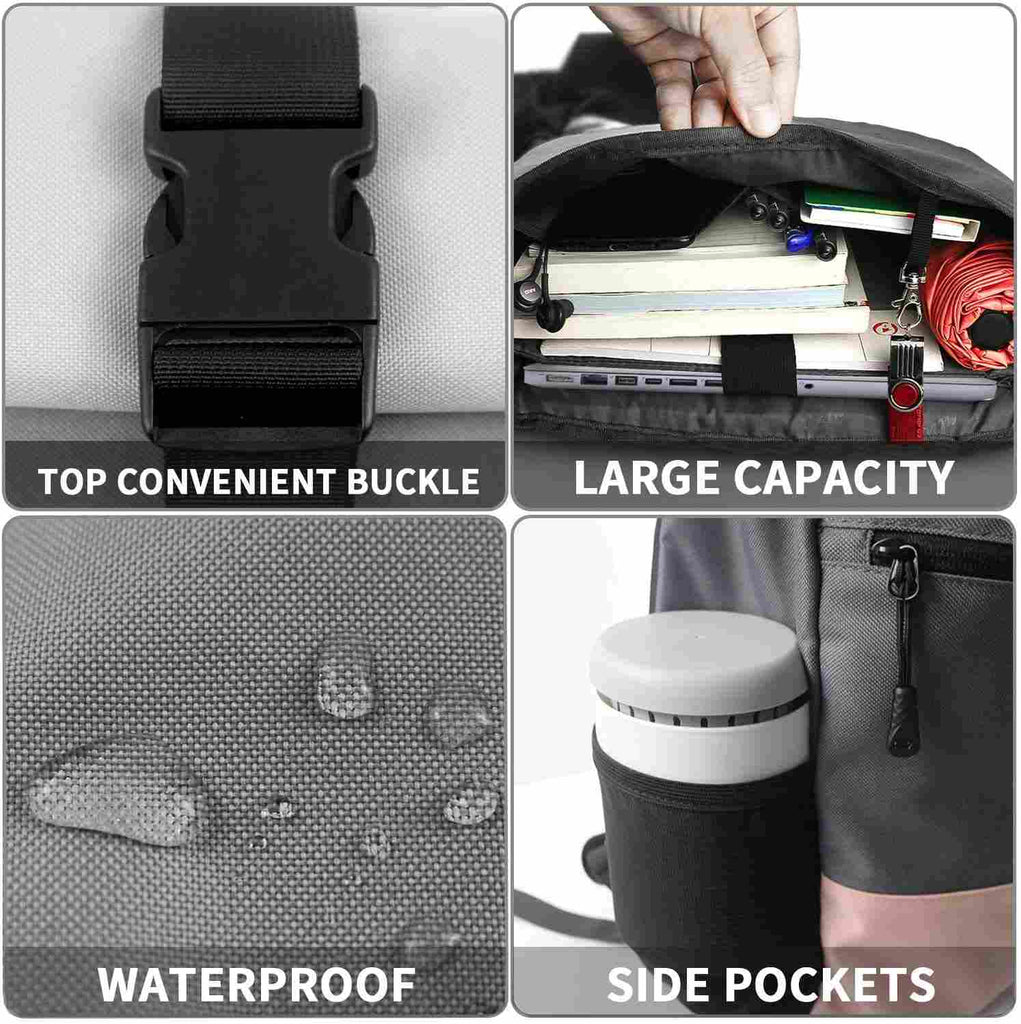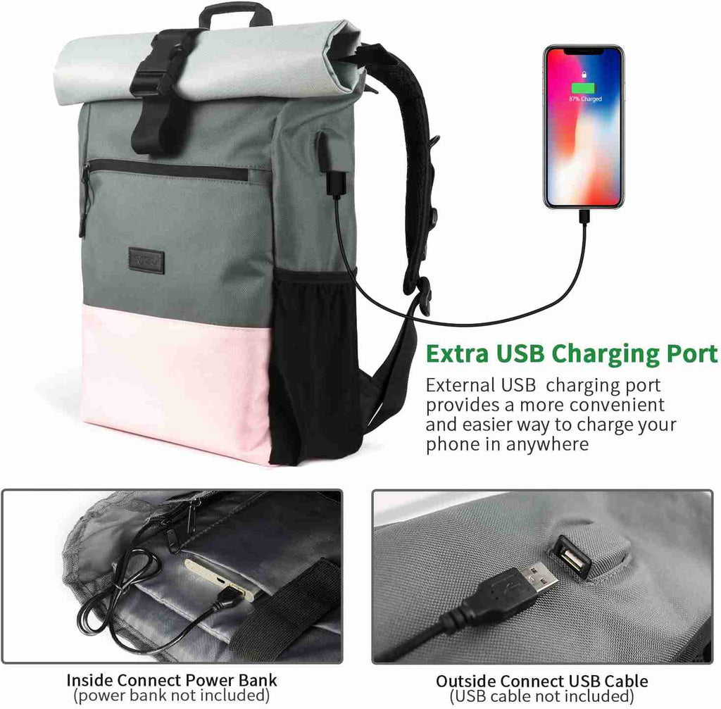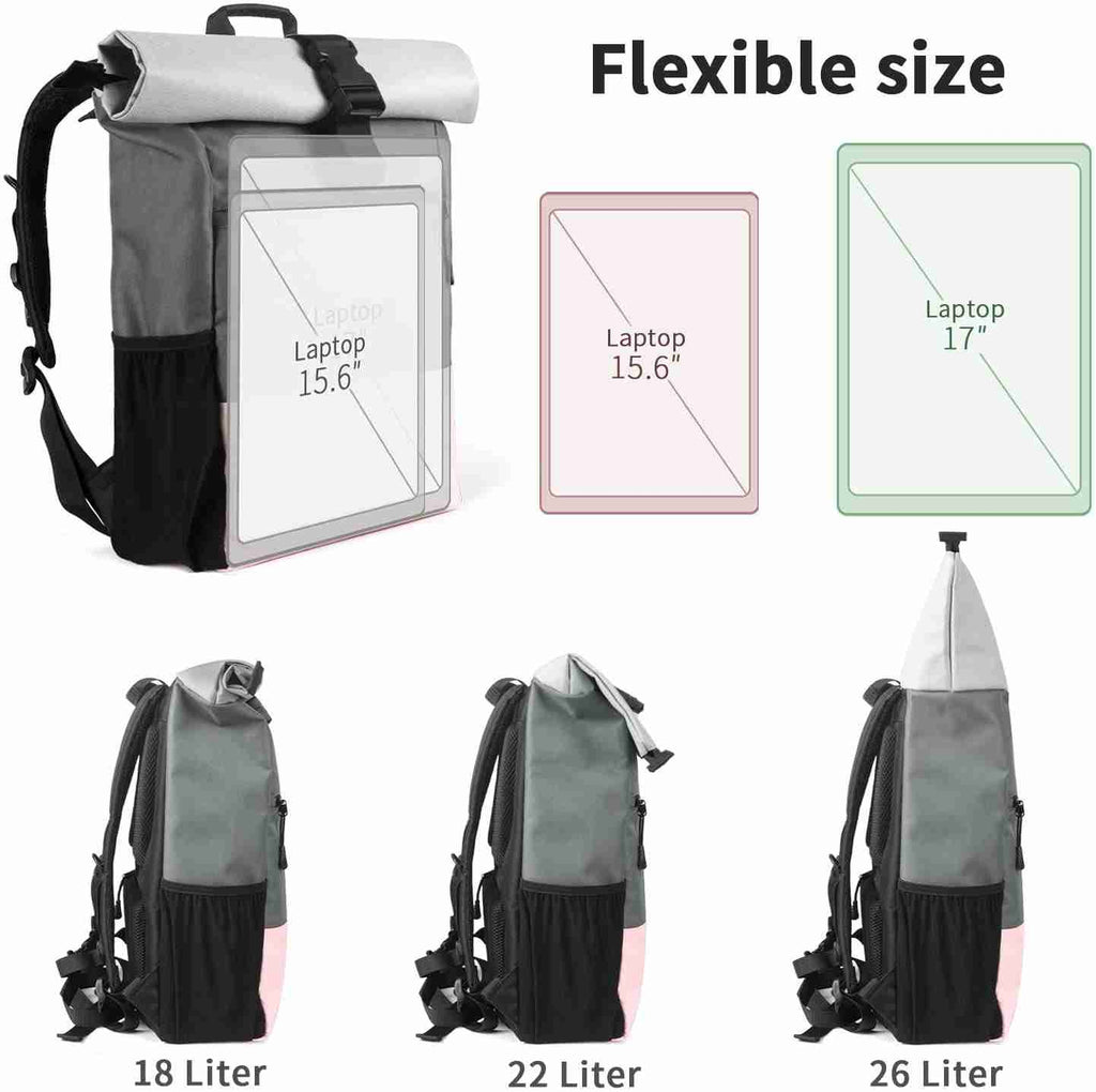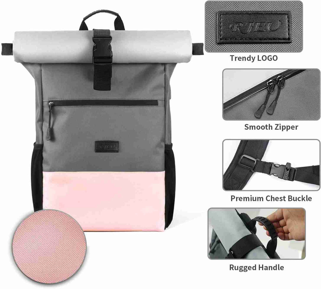 Rucksack Damen,Schulrucksack Mädchen Teenager,Rolltop Rucksack Frauen mit 12-17 Zoll Laptopfach für Freizeit,Uni,Schule,Arbeit,Reisen