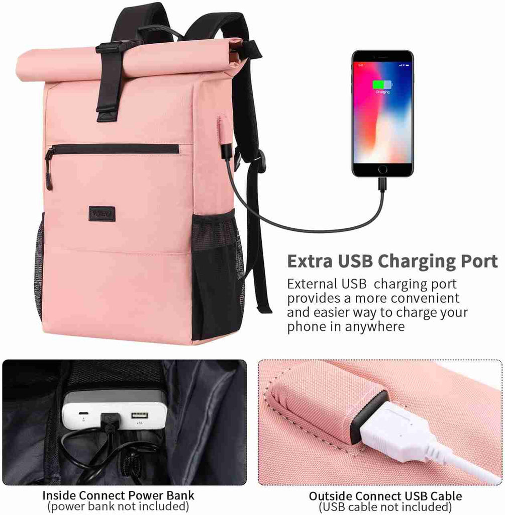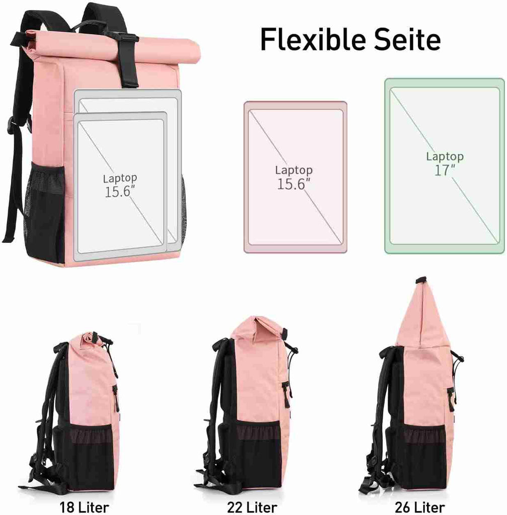 Rucksack Damen,Schulrucksack Mädchen Teenager,Rolltop Rucksack Frauen mit 12-17 Zoll Laptopfach für Freizeit,Uni,Schule,Arbeit,Reisen
