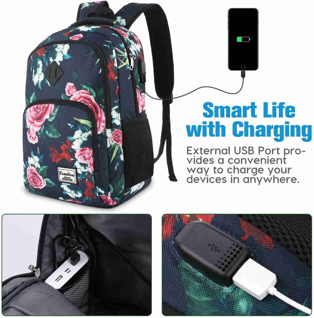 - USB-Anschluss-Design:Mit integriertem USB-Ladegerät außen und integriertem Ladekabel im Inneren bietet dieser USB-Rucksack eine bequemere Möglichkeit,Ihr Telefon während des Gehens aufzuladen. Bitte beachten Sie,dass dieser Rucksack sich nicht selbst antreibt,USB-Ladeanschluss bietet nur einen einfachen Zugang zu berechnen.