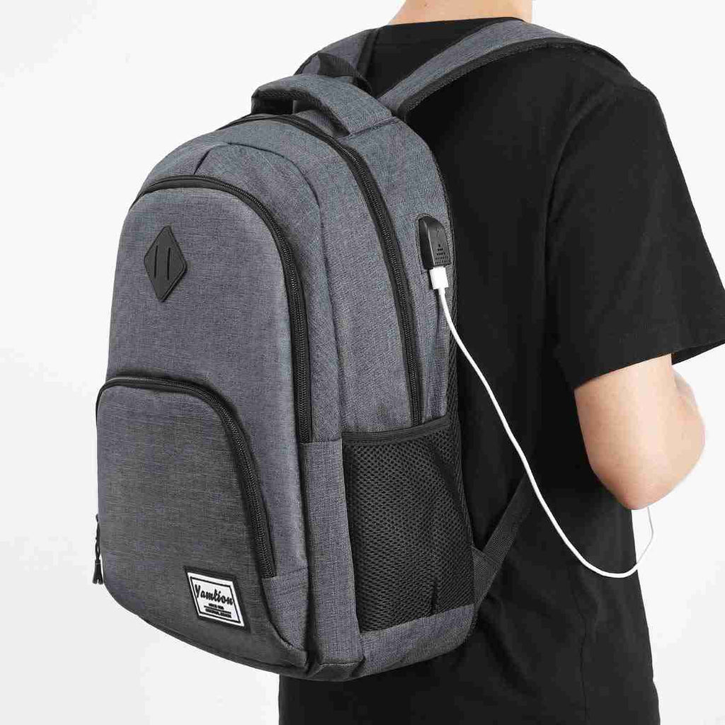 Mit integriertem USB-Ladegerät außen und integriertem Ladekabel im Inneren,bietet dieser USB-Rucksack Ihnen eine bequemere Möglichkeit,Ihr Telefon während des Gehens aufzuladen.