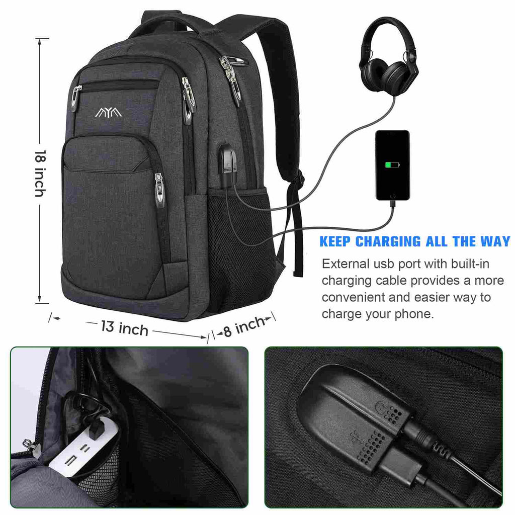 -15+ Taschen bieten Platz für Ihren Laptop (17 Zoll oder kleiner), Notebook, Kleidung, iPad und so weiter. Die zwei Außentaschen für Regenschirm und Flasche erleichtern das Auffinden bei Bedarf. In der Diebstahlschutztasche befinden sich Ihre Wertsachen wie Brieftasche und Schlüssel.